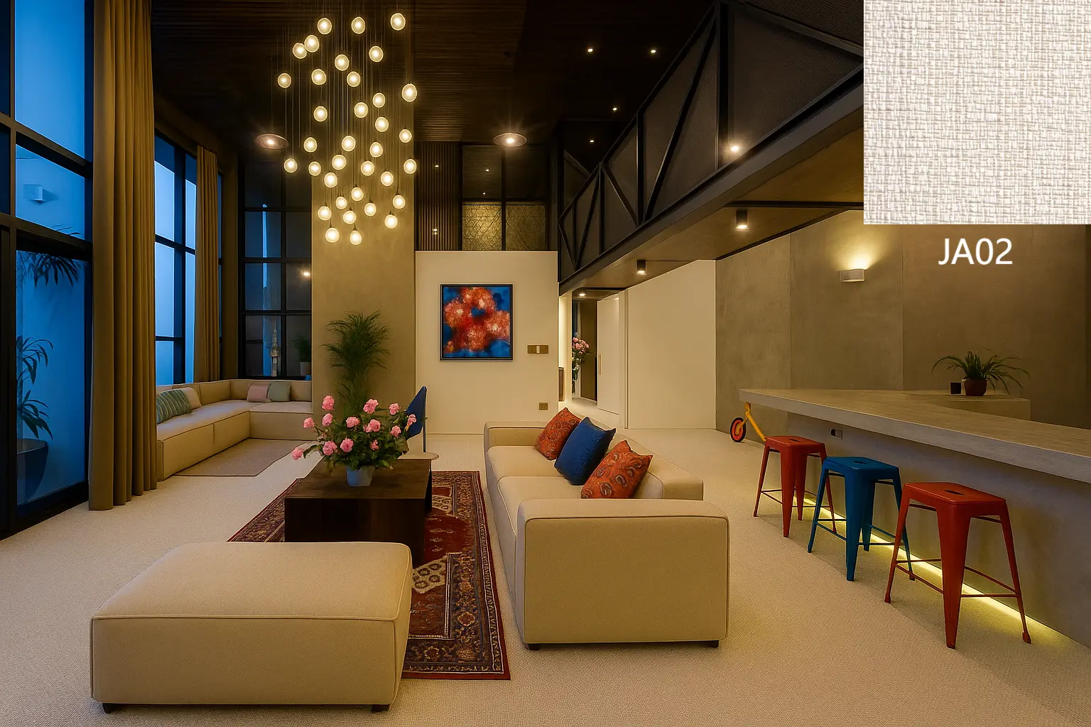 Dòng sản phẩm Quiet có thiết kế jacquard hai màu cổ điển với màu sắc thanh lịch, yên tĩnh. Nó tạo ra một bầu không khí nghệ thuật độc đáo, mang lại cảm giác yên bình và sang trọng giữa cuộc sống thành phố nhộn nhịp.